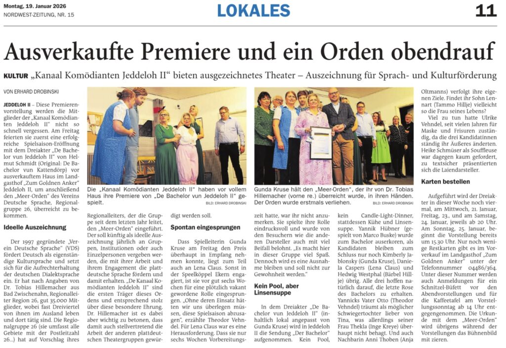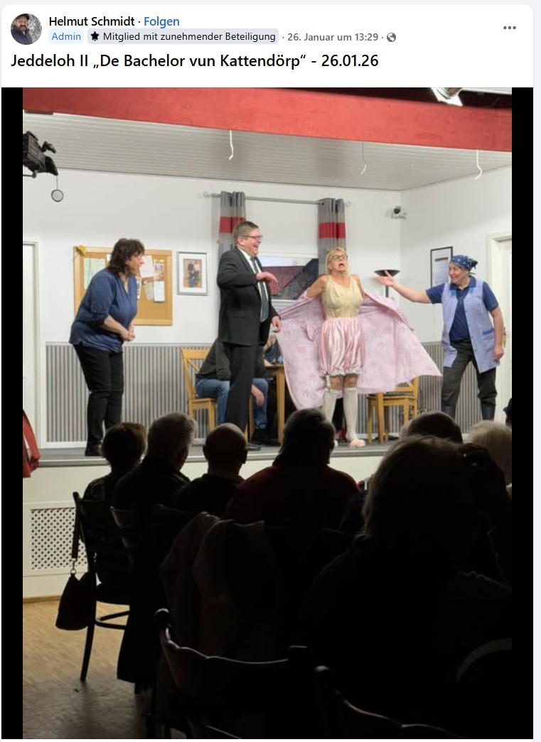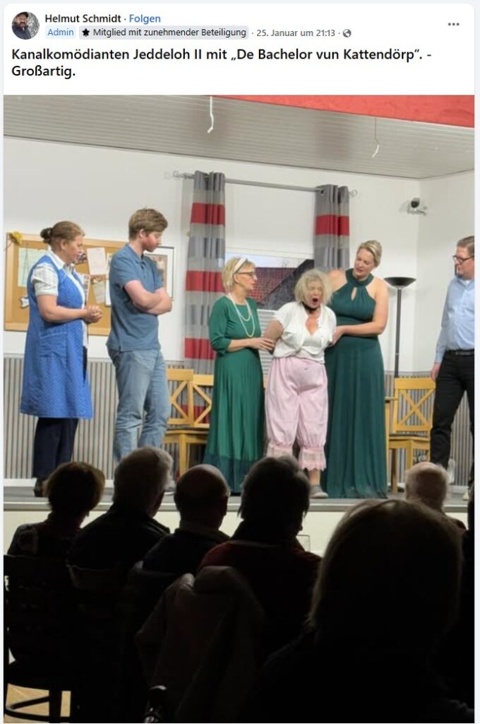 Besuch unserer letzten Aufführung „De Bachelor vun Jeddeloh II“ vom Autor Helmut Schmidt